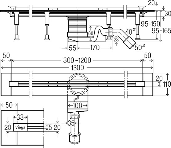 Advantix-Vario-Duschrinne-Grundkörper 300 - 1200mm ablängbar 95mm, Kunststoff