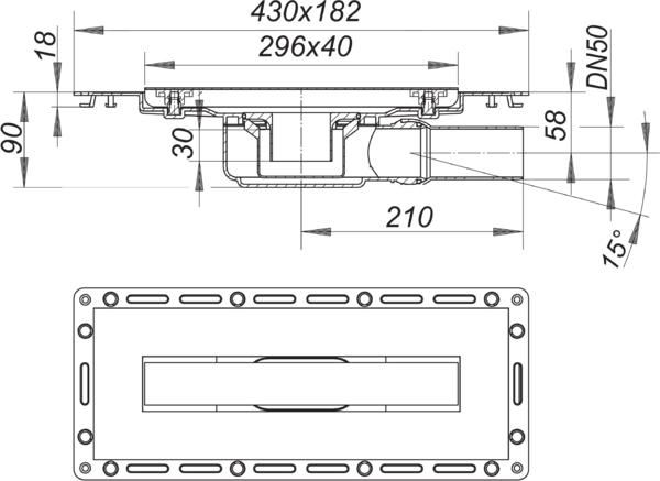 Duschrinne TistoLine Plan Standard 300 BH 90mm, Ablauf seitl. DN 50, 300x40mm