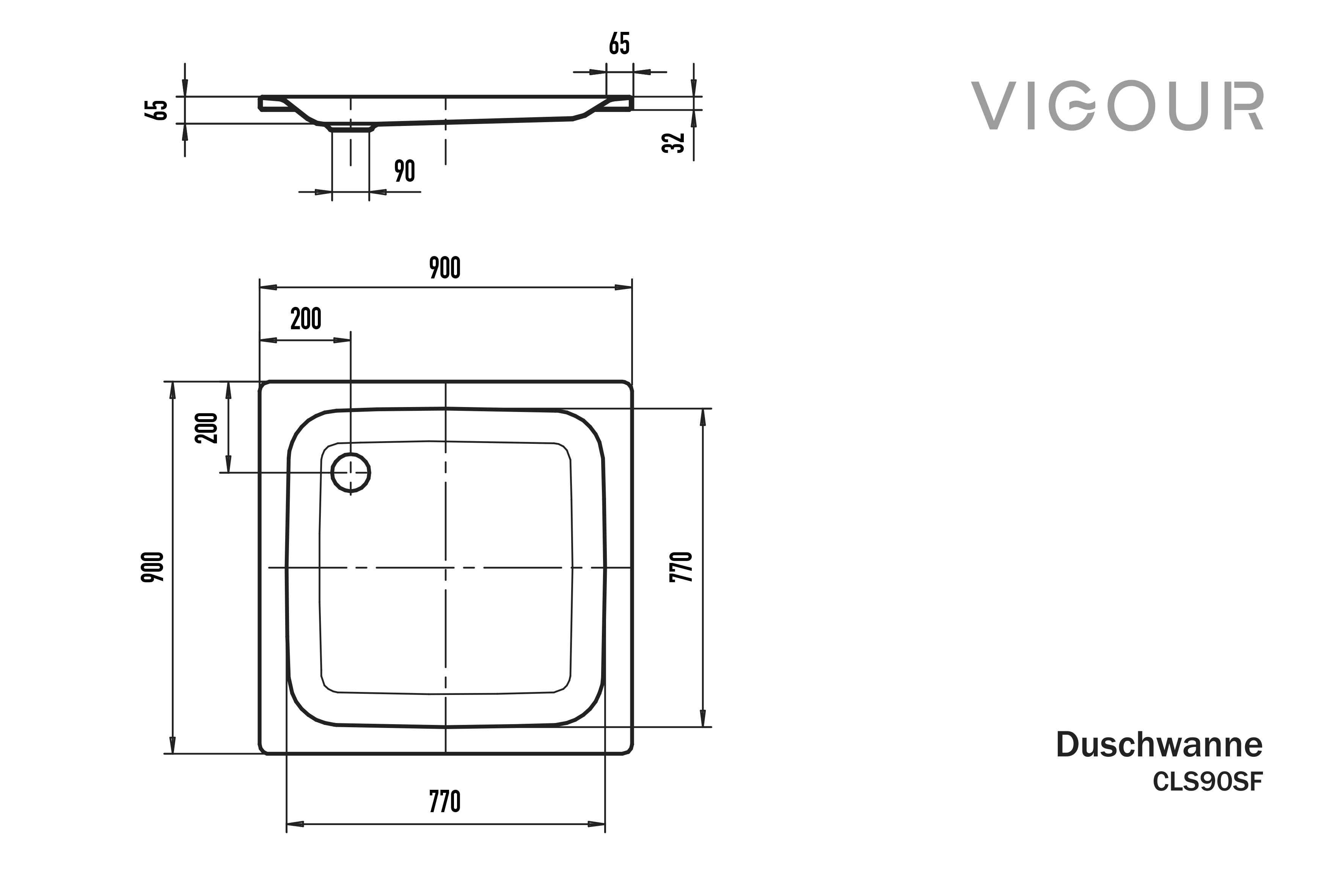 Duschwanne Stahl clivia V2 90x90x6,5cm weiss VIGOUR