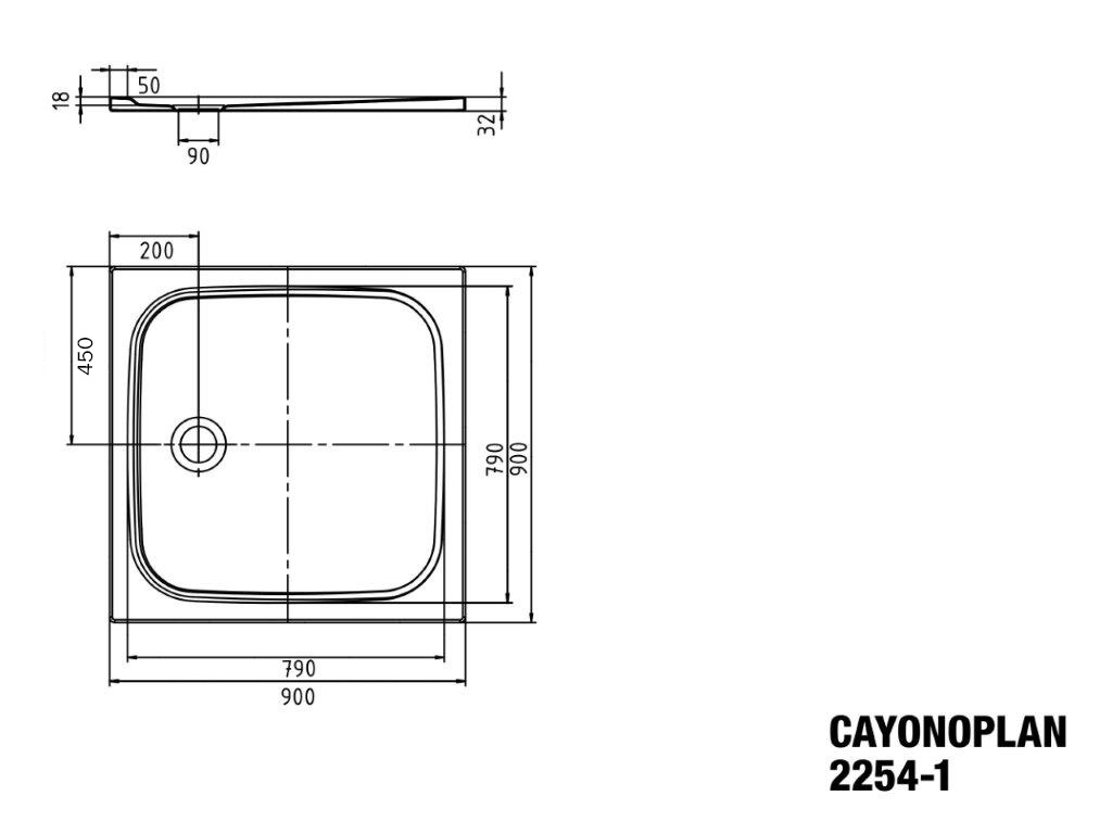 Duschwanne Stahl Cayonoplan 90x90x1,8cm alpinweiß