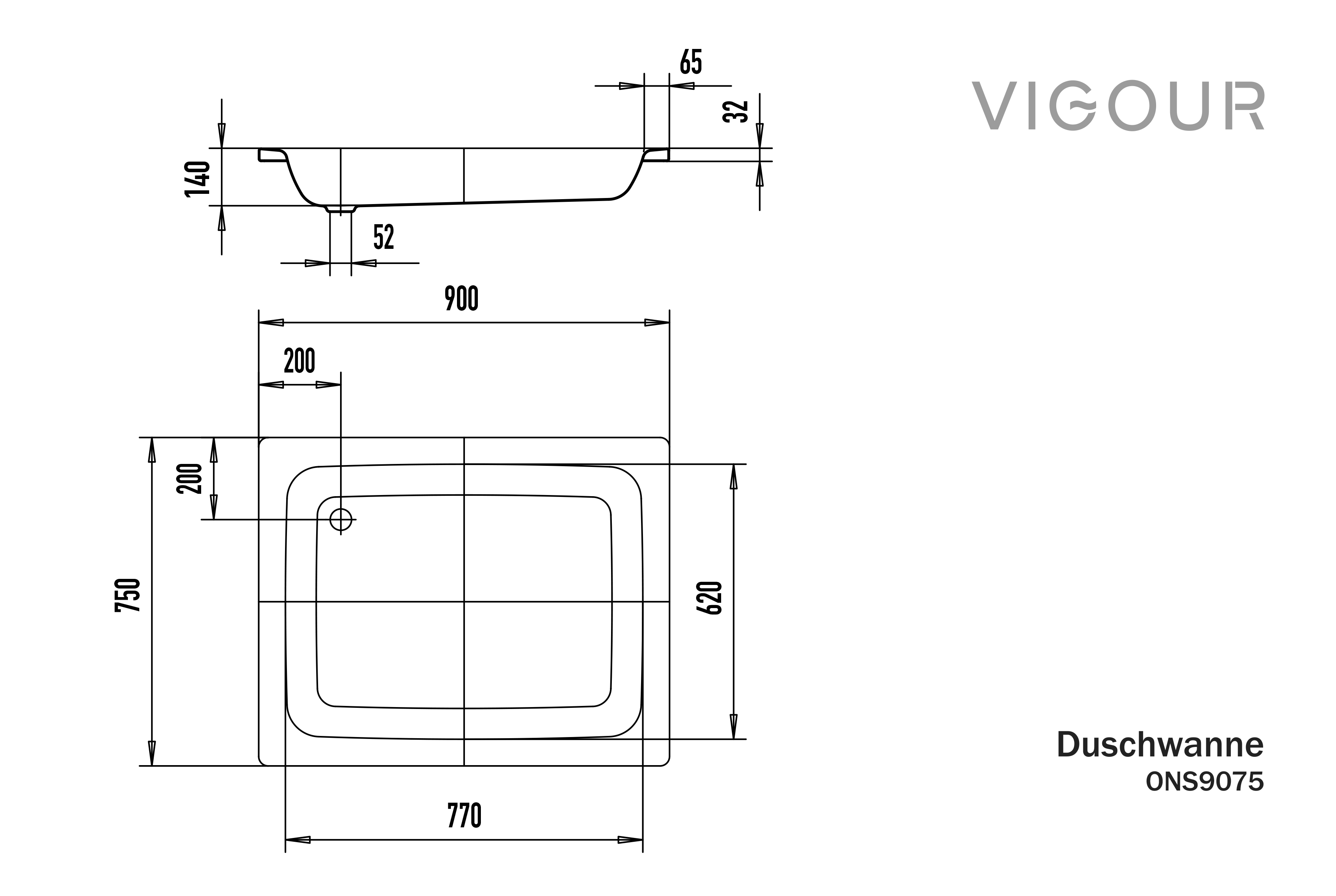 Duschwanne Stahl one V1 90x75x14cm weiss VIGOUR