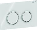 Die Omega20 Abdeck- und Betätigungsplatte für die Unterputz-Spülkästen der Omega-Reihe von GEBERIT besticht durch ihr einzigartiges Design: weiße Grundfarbe mit ausgewogen verchromten Kontrastringen um die Betätigungsflächen. Ihre separaten Spültaster sind unterschiedlich in der Größe und lassen so auf einen Blick die Spülvarianten erkennen – wassersparend oder normal. In Form, Gestaltung und erstaunlich geringer Größe verbindet sich die Abdeckplatte des Spülkastens in ästhetischer Weise mit der individuellen Badgestaltung. Die Abdeckplatte Omega20 von GEBERIT ist zur Spülauslösung der GEBERIT Omega Unterputz-Spülkästen konzipiert. Sie kann sowohl waagerecht als auch senkrecht eingebaut werden, also von oben wie auch von vorn betätigt werden. Damit gibt sie größeren Gestaltungsspielraum im Bad als herkömmliche Betätigungsplatten. Die schallgedämmten Drückerstangen sorgen für eine angenehm weiche Tastenbedienung. Für ein formvollendetes Traumbad stehen fünf weitere Farbvarianten zur Auswahl.