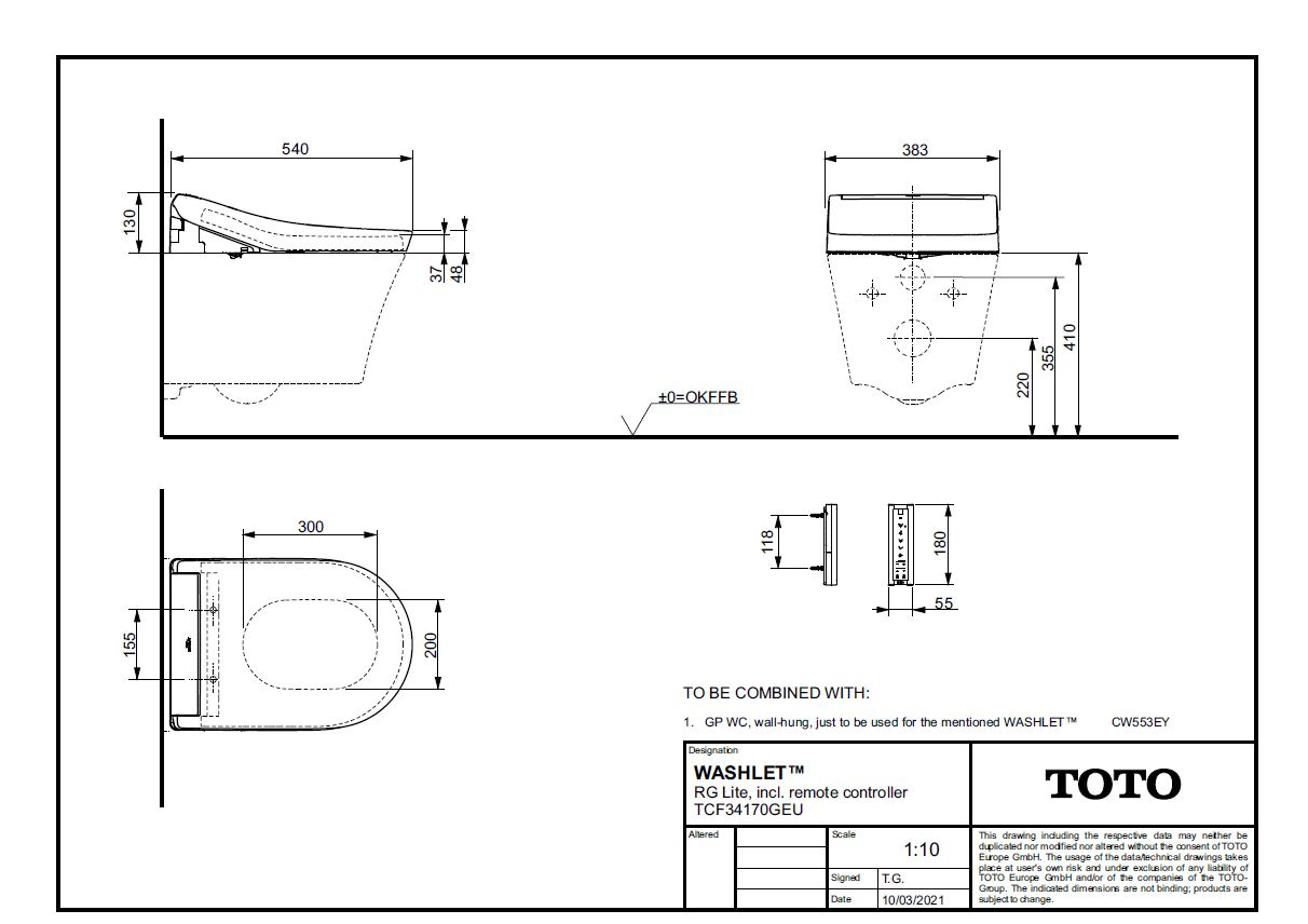 TOTO Washlet RG Lite Dusch-WC verd. Anschl FB EWATER+ f Düse u Entkalkungsf.