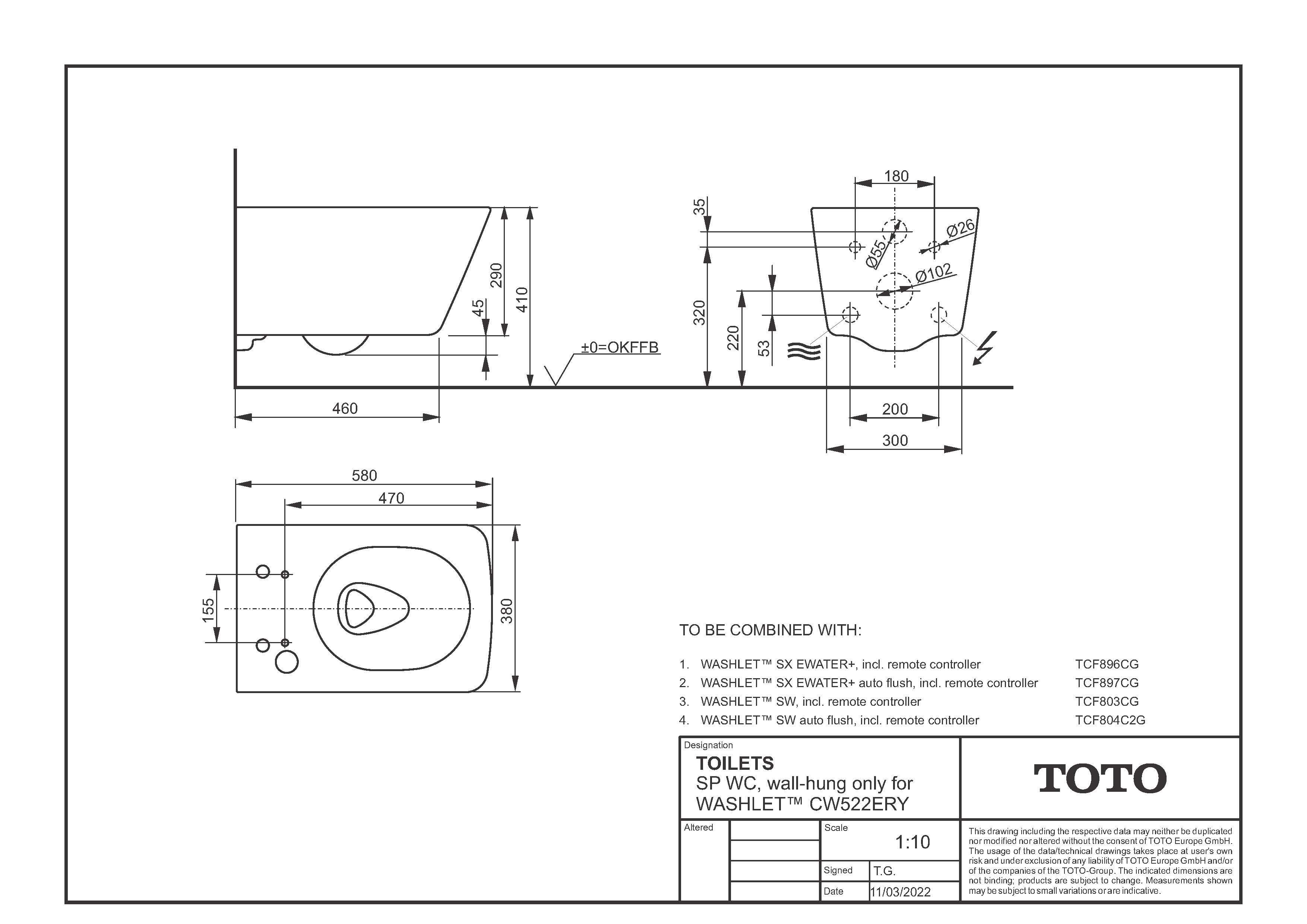 TOTO SP Wand-WC randlos weiß Tiefspüler für SX und SW Washlet