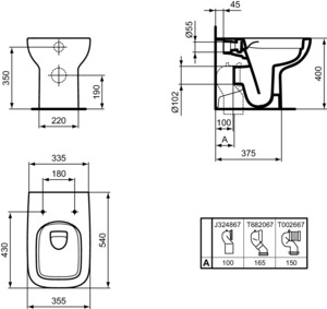Standtiefspül-WC i.Life A 355x540x400mm weiss spülrandlos Ideal Standard