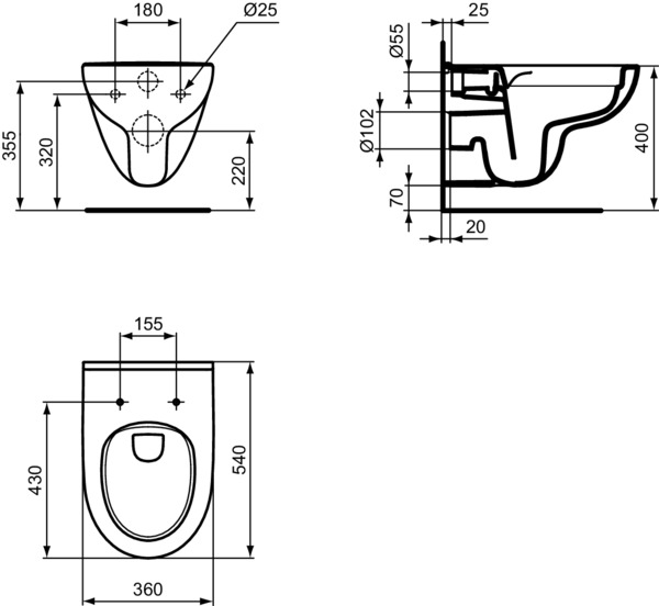 Wand-WC i.Life Randlos 360x540x 330mm weiss mit IP Ideal Standard
