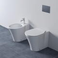 Der WC-Sitz Sandwich aus der IDEAL STANDARD Linie Connect Air begeistert hier mit ultraflachem Design und zeugt damit von einem trendstarken, gehobenen Erscheinungsbild. Aus umweltfreundlichem Duroplast mit Edelstahl-Scharnieren gefertigt, erweist sich der Sitz zudem als besonders widerstandsfähig und lässt sich außerdem für eine noch einfachere Reinigung abnehmen. Optional ist er auch mit der Soft-Close-Technik erhältlich.