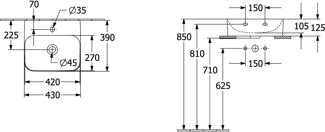 Handwaschbecken Finion 430x390mm weiß C+ VB