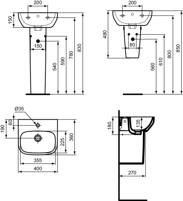 Handwaschb.i.Life 1Hl. m.Ül. 400x360x 150mm weiss Ideal Standard
