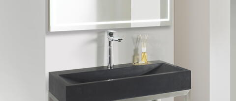 Klein, aber sehr fein: Der Stainless Atlas 4 präsentiert sich als ein platzsparender Möbelwaschtisch im edlen Look. Das hervorstechende Merkmal besteht hier unumstritten aus dem verwendeten Werkstoff Naturstein, durch den das Design eine wahre Einzigartigkeit erlangt. Dieses ökologische Material dient bereits seit Jahrtausenden als Baustoff. Es verschmilzt im Stainless Atlas 4 mit dem Edelstahl-Untergestell zu einer eleganten Symbiose: Natur und Industrie vereinen sich zu auf eine unverwechselbare Art. Außerdem sieht sich das Handwaschbecken trotz seiner kompakten Größe formschön und gleichzeitig ausreichend groß gestaltet. Auf diese Weise gelingt beides: vorteilhaft die Hände waschen und Platz sparen.