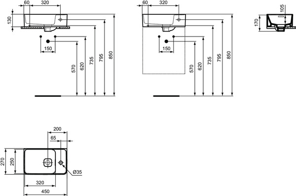 Handwaschbecken mit seitlichem Hahnloch Strada II