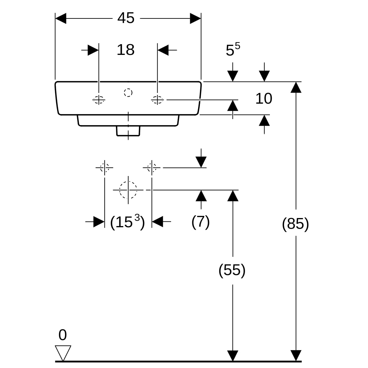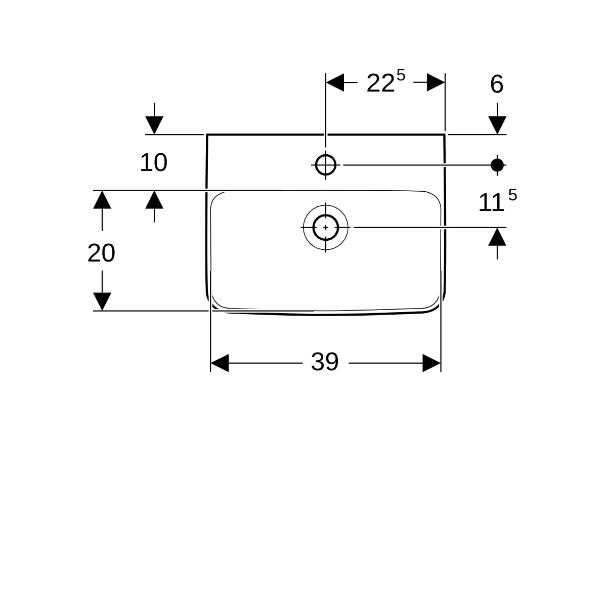 Handwaschbecken Renova Plan 45x34cm m. Hl. mittig m. Ül. weiss Geberit