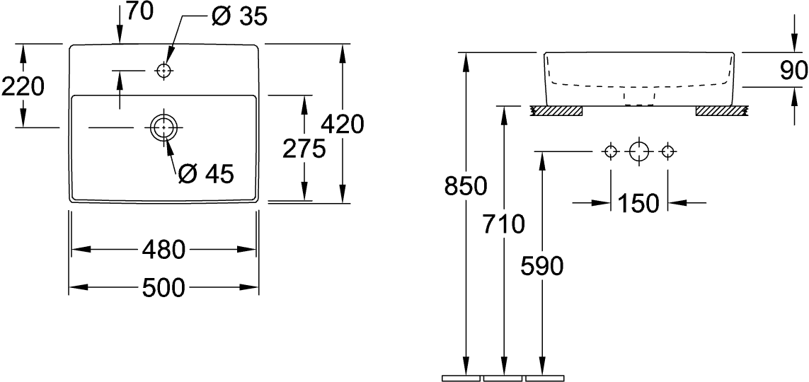 Aufsatzwaschtisch Memento 2.0 50x42cm weiss ceramicplus Villeroy+Boch