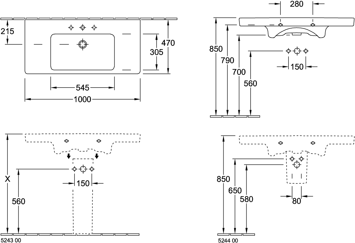 Der extra breite Waschtisch aus der Villeroy & Boch Serie Subway 2.0 überzeugt mit modernem, eckigem Design in klassischem Weiß. Optional mit hochwertiger Oberflächenveredelung erhältlich, bietet er großzügige Ablageflächen und viel Komfort – die ideale Lösung für das Familienbad.