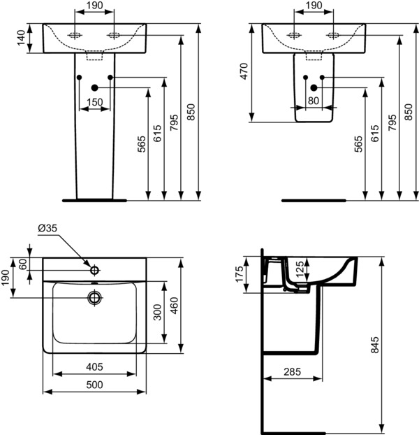 Waschtisch Connect Cube 50x46x17.5cm weiss Ideal Standard