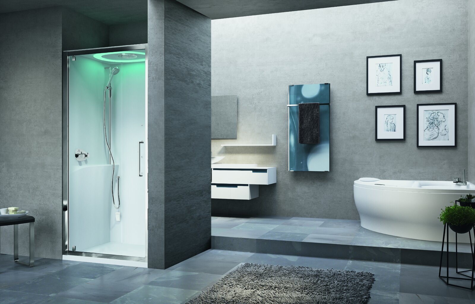 Diese Multifunktionsdusche aus der Reihe Eon schickt den Körper auf Erholungsreise – und zwar jeden Tag aufs Neue. Mit ihrem elegant puristischen Design passt sie außerdem perfekt in die zeitgemäße Badgestaltung und versprüht dort exklusives Flair. Lassen Sie sich mit Eon verwöhnen: ob Hydromassage, LED-Lichttherapie oder Dampfbad. Mit den vertikalen Hydromassagedüsen und der Dampfbadfunktion ist pures Wellness-Feeling garantiert. Eine integrierte Beleuchtung sorgt dabei für die richtige Atmosphäre und verspricht Entspannung auf Rekordniveau. Die Komplettdusche des Experten Novellini bietet hier ein praktisches Rundumpaket, sodass Sie nur noch eintreten und genießen müssen.