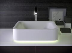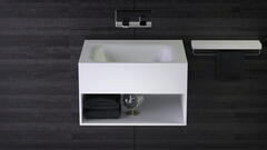 Neben den einzigartigen Formen überzeugt die Serie Shine mit seinem natursteinähnlichen K I Stone-Mineralwerkstoff. Natürlich glänzende Oberflächen werden ausschließlich durchs Polieren erzielt, das vollgegossene Material liefert einen außergewöhnlichen Look mit herausragenden Pflegeeigenschaften und seidig warmer Haptik.