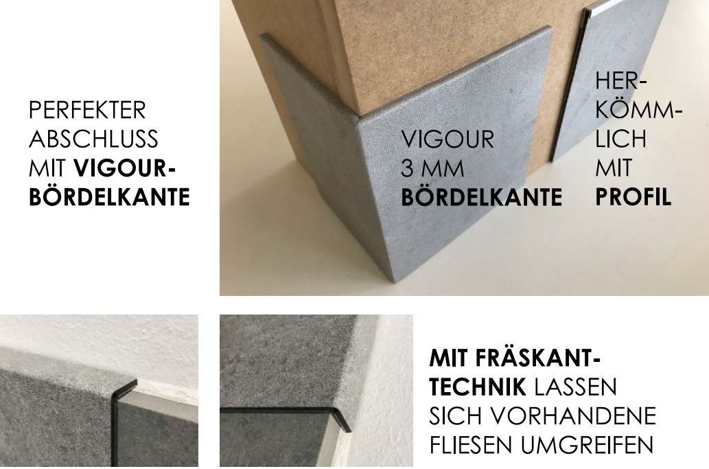 Perfekter Abschluss mit VIGOUR-Bördelkante oder Fräskant-Technik: