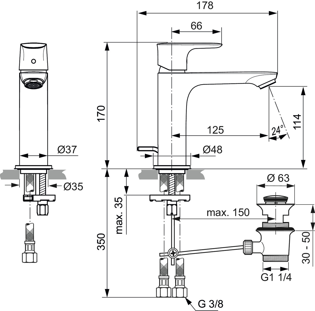 Einhand-Waschtischb. Connect Air Grande Slim, m. Abl., chrom Ideal Standard